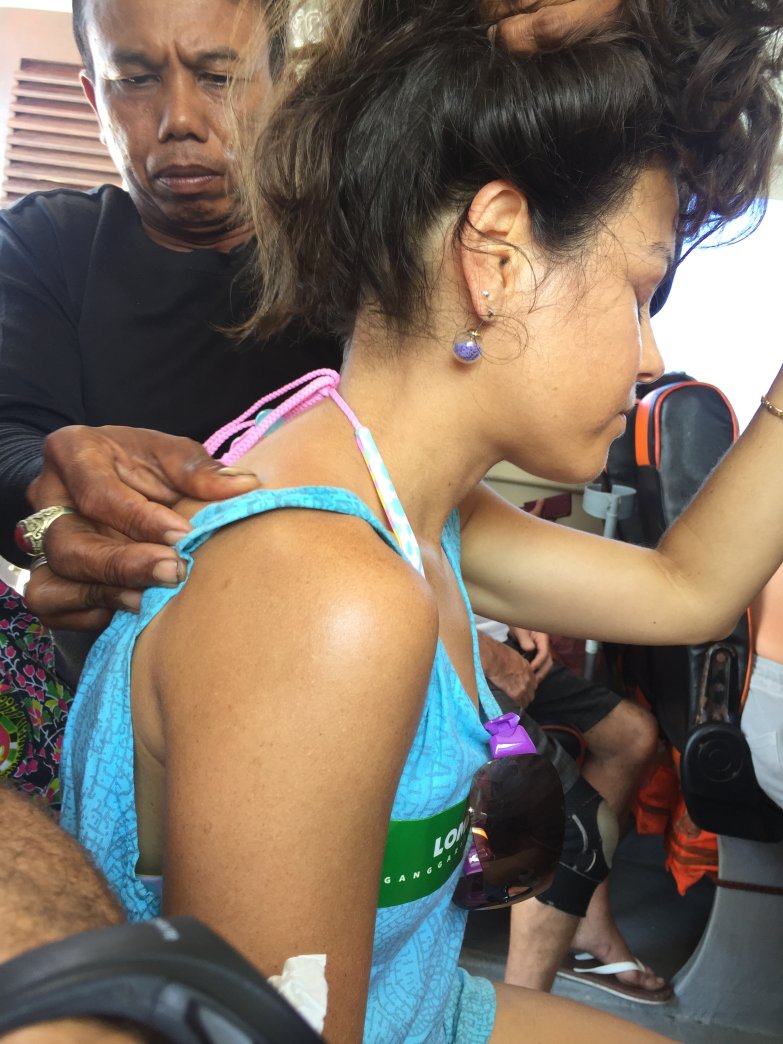 GiliAir_IMG_2337 Published July 29, 2017 at 783 × 1044 Someone got dizzy on the way back and got a free massage. Masseur had just had a manicure. // Alguien se mareó en el camino y recibió un masaje gratis. El masajista venia de hacerse la manicure.
